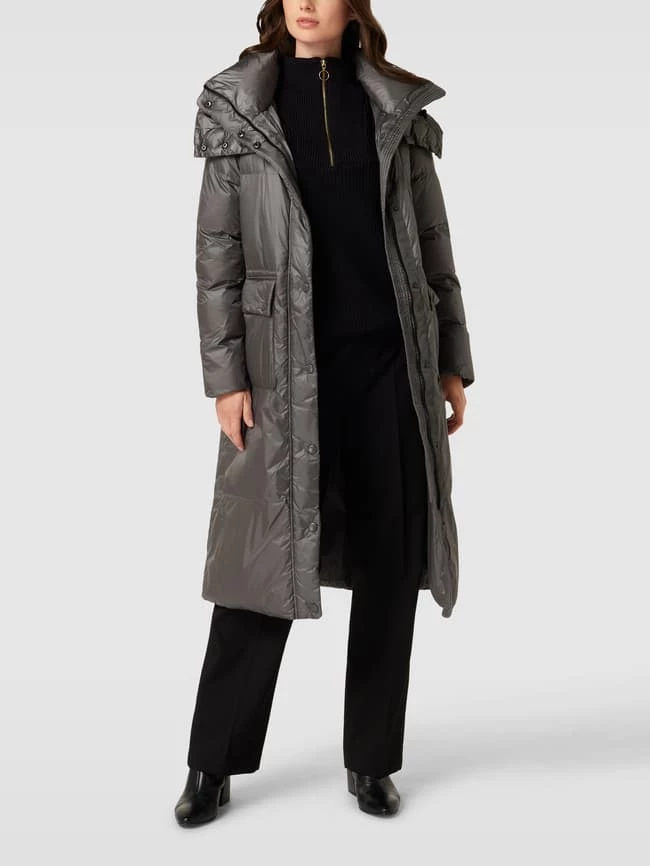 Blauer Usa Steppmantel Mit Abnehmbarer Kapuze – Mittelgrau