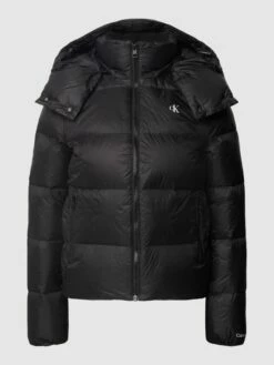 Der Steppmantel von Calvin Klein Jeans ist aus strapazierfähigem Material mit recyceltem Anteil gefertigt. Er kommt in gerader Passform mit regulierbarer Kapuze, verdecktem Reißverschluss und Wattierung.