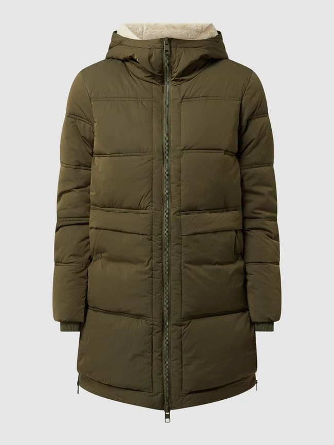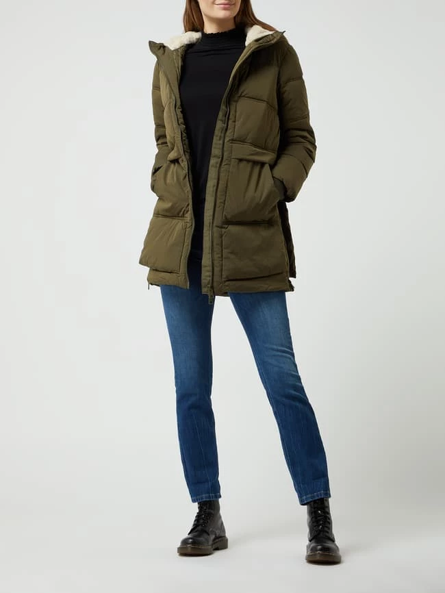 Der Parka von Esprit ist aus atmungsaktivem Material gefertigt und leicht tailliert geschnitten. Er kommt mit Kapuze, Futter aus Kunstfell und Wattierung.