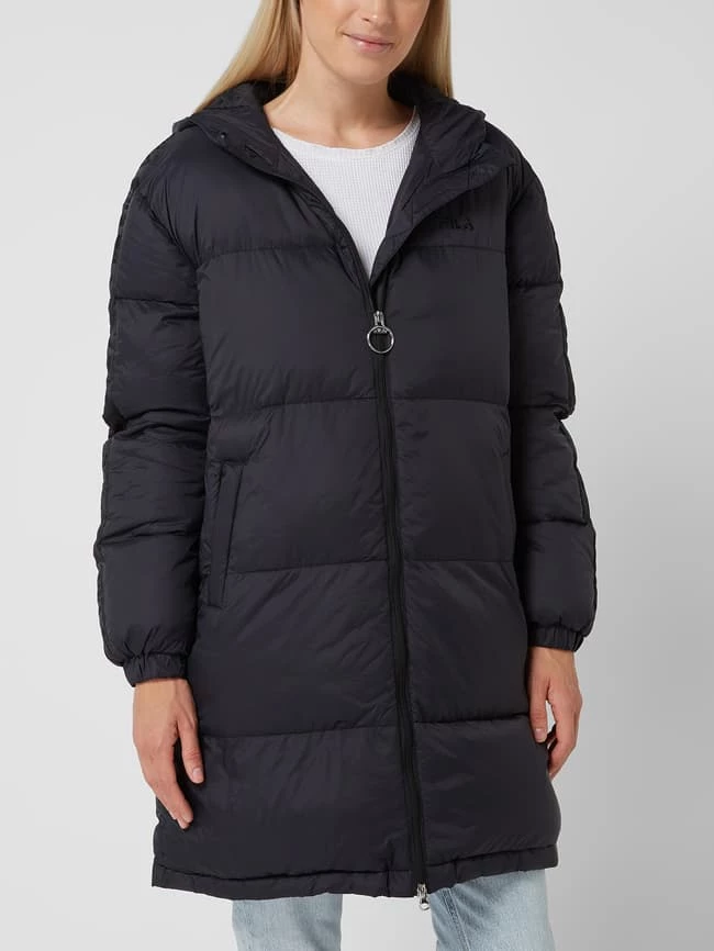 Der Steppmantel von FILA ist aus strapazierfähigem Material gefertigt und locker geschnitten. Er kommt mit Kapuze, Zweiwege-Reißverschluss und Logo-Streifen.