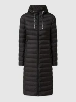 Der Mantel von Fuchs & Schmitt ist aus einem Material-Mix mit Woll-Anteil gefertigt und gerade geschnitten. Er zeigt sich mit Allover-Muster und seitlichen Eingrifftaschen.
