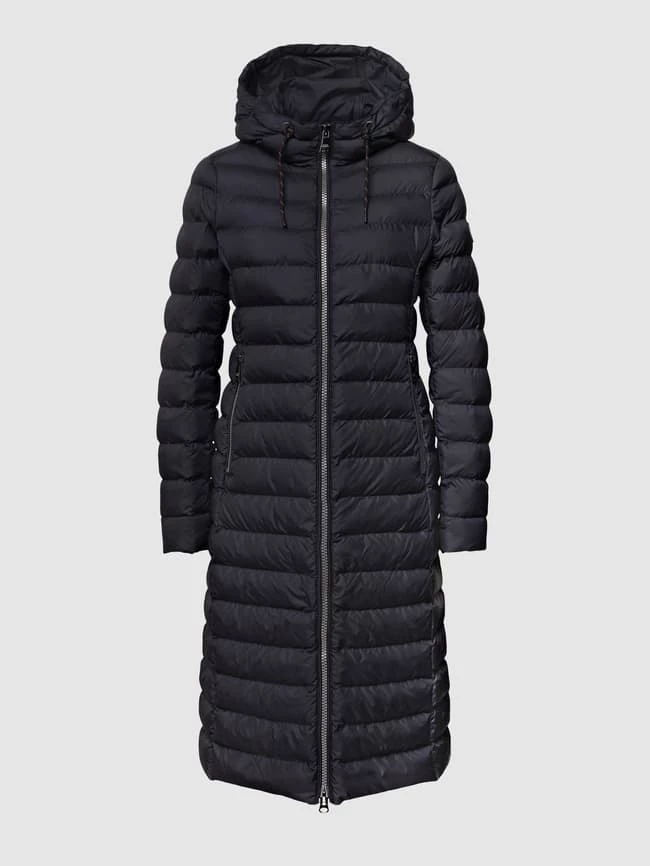 Der Steppmantel von Fuchs & Schmitt ist aus strapazierfähigem Material gefertigt und gerade geschnitten. Er kommt mit Label-Patch, Kapuze mit Tunnelzug und Reißverschlusstaschen.