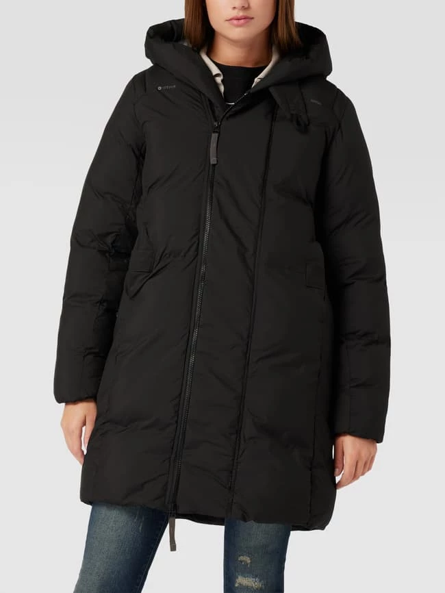 Der Steppmantel von G-Star RAW ist aus einem strapazierfähigen Material gefertigt und im Regular Fit gehalten. Er zeigt sich in unifarbenem Design sowie mit Label-Print und Kapuze.
