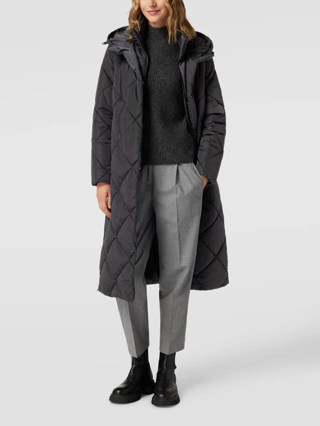 Der Steppmantel von Gerry Weber Edition ist aus strapazierfähigem Material gefertigt und locker geschnitten. Er kommt mit Kapuze, Stehkragen und Druckknopfverschluss.