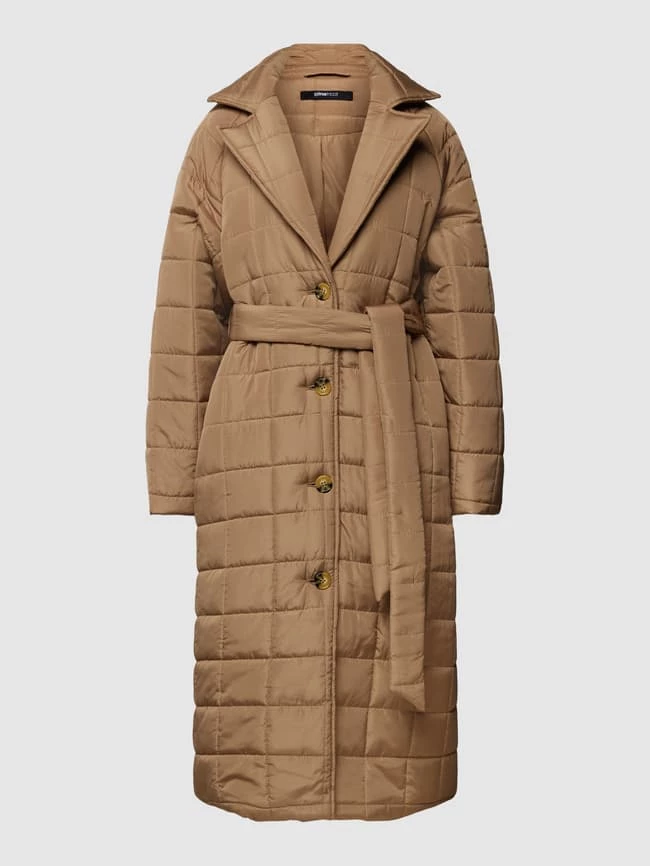 Der Mantel von Gina Tricot ist aus strapazierfähigem Material gefertigt und gerade geschnitten. Er zeigt sich mit Karomuster, Taillengürtel, Reverskragen und seitlichen Eingrifftaschen.