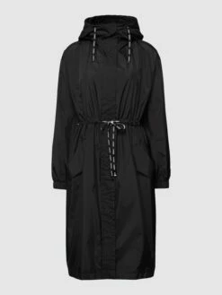Der Mantel von HUGO ist aus strapazierfähigem Material gefertigt und gerade geschnitten. Er kommt mit Kapuze, Reißverschluss und seitlichen Eingrifftaschen mit Knopfverschluss.