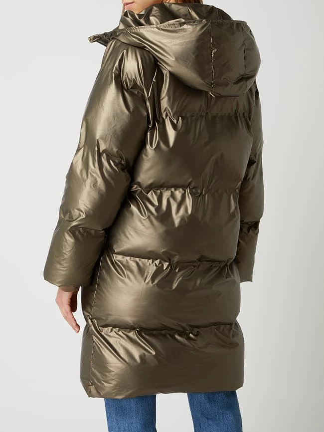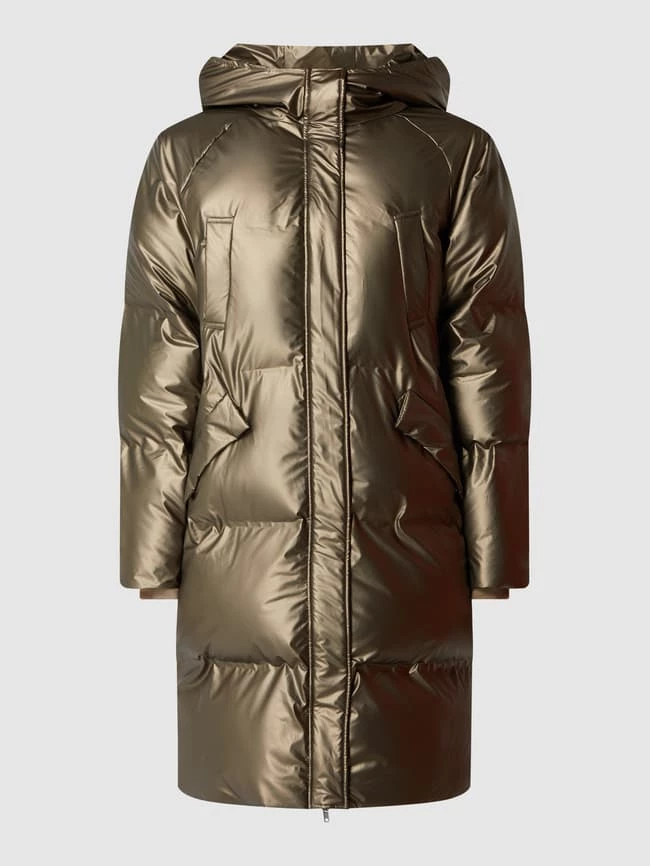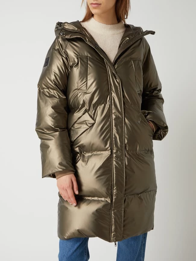 Die Steppjacke von ICHI ist aus strapazierfähigem Material gefertigt und gerade geschnitten. Sie zeigt sich in Metallic-Optik mit Kapuze, Reißverschluss und Eingrifftaschen.