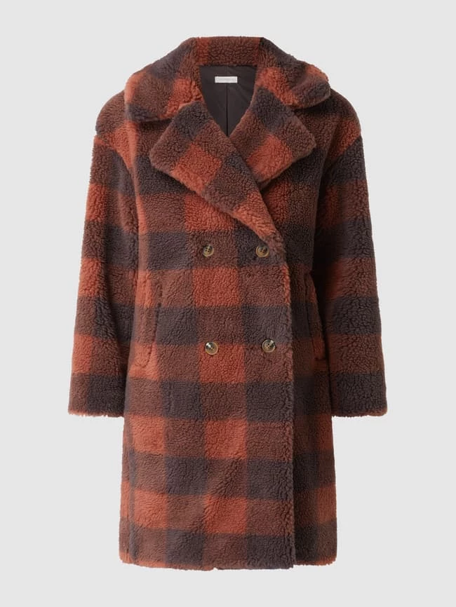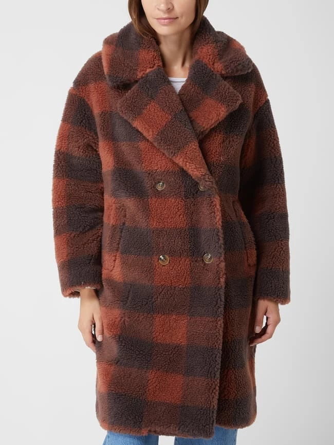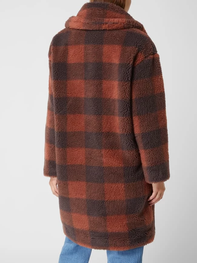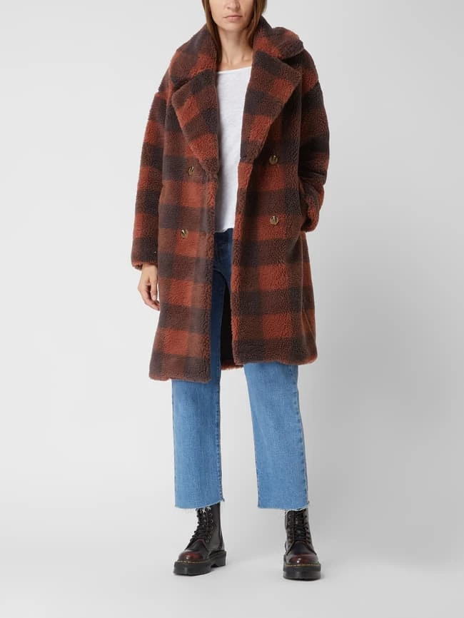 Der Mantel von JcSophie ist aus Teddyfell gefertigt und locker geschnitten. Er kommt mit Karomuster, Reverskragen und 2-reihiger Knopfleiste.