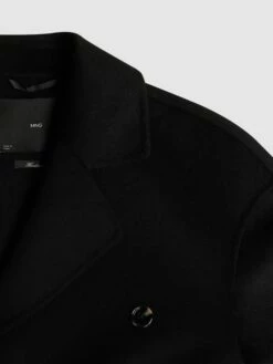Der Mantel von MANGO ist aus einem Material-Mix mit Woll-Anteil gefertigt und locker geschnitten. Er zeigt sich mit doppelreihiger Knopfleiste, Reverskragen und Eingrifftaschen.