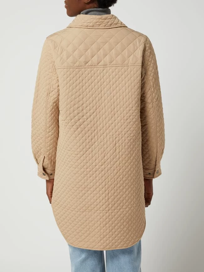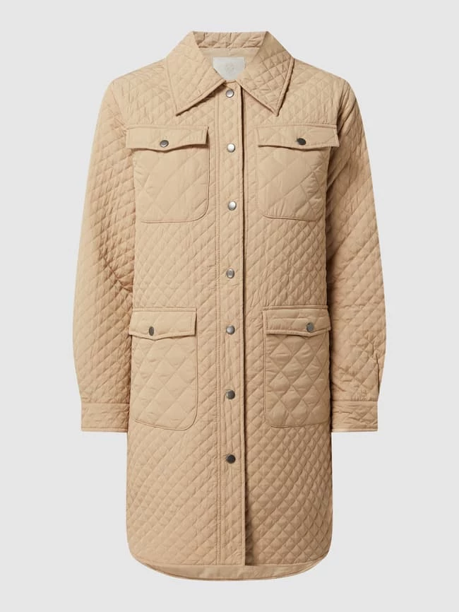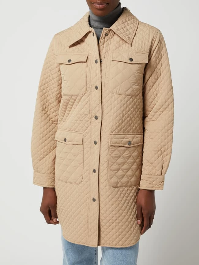 Der Steppmantel von Minus ist aus strapazierfähigem Material gefertigt. Er kommt in gerader Passform mit Umlegekragen, Druckknopfleiste und Wattierung.