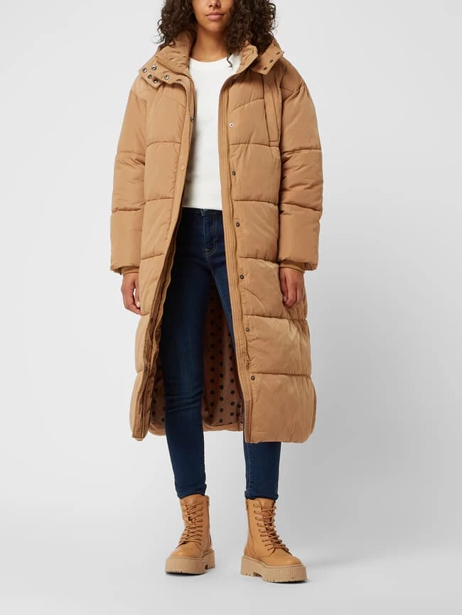 Der Steppmantel von Nümph ist aus strapazierfähigem Material gefertigt. Er zeigt sich in lockerer Passform mit Kapuze, überschnittenen Schultern und Wattierung.