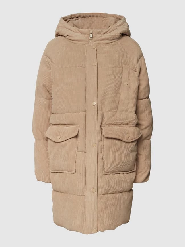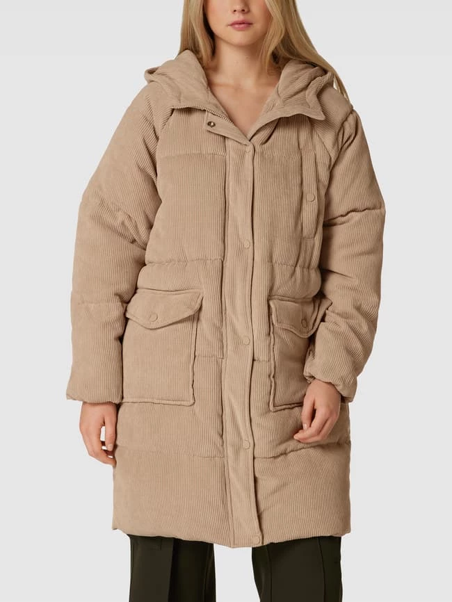 Der Steppmantel von ONLY ist aus strapazierfähigem Material gefertigt und gerade geschnitten. Er kommt aus Cord mit Kapuze, Reißverschluss und Pattentaschen.
