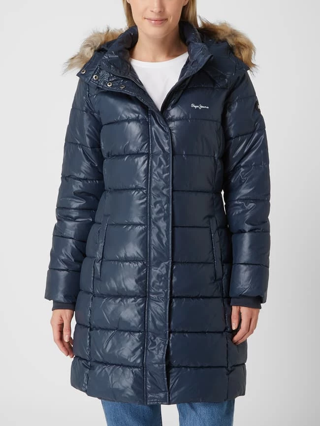Pepe Jeans Steppmantel Mit Webpelz Modell ‘Anja’ – Marineblau