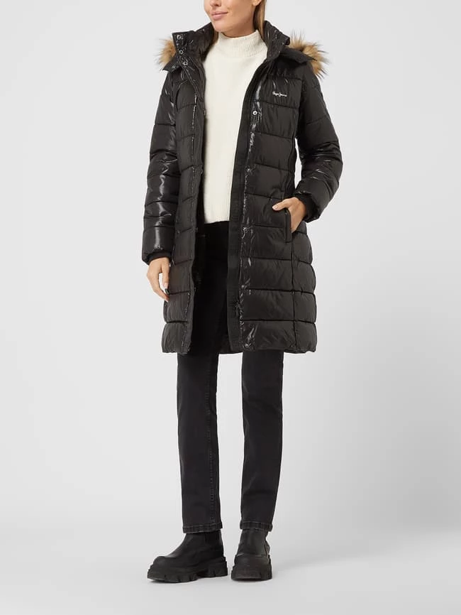 Pepe Jeans Steppmantel Mit Webpelz Modell ‘Anja’ – Schwarz
