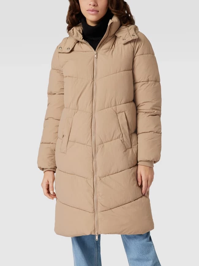 Pieces Steppmantel Mit Eingrifftaschen Modell ‘LONG PUFFER’ – Taupe