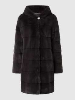 PETITE M. Mantel Aus Webpelz Mit Kapuze – Anthrazit