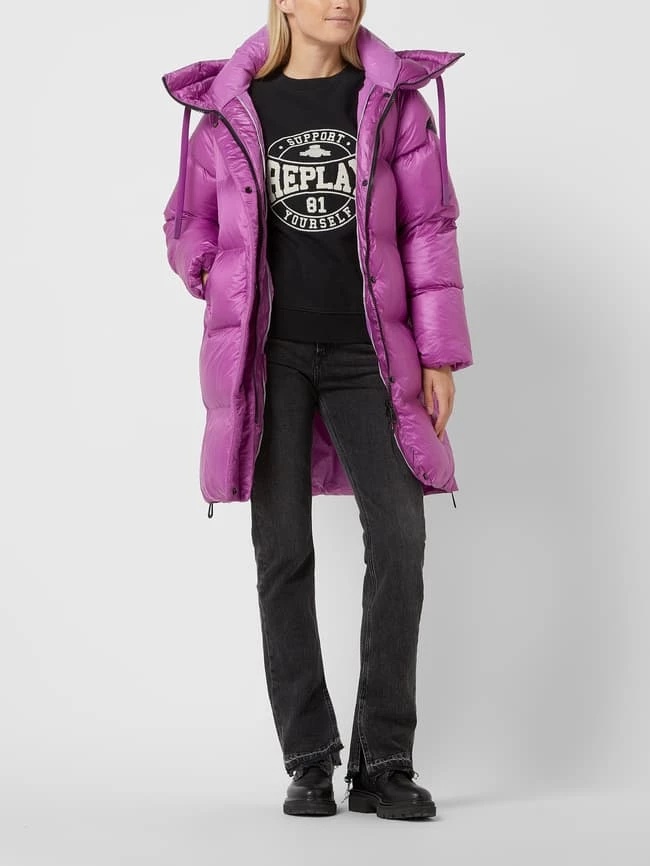 Der Steppmantel von Replay ist aus strapazierfähigem Material gefertigt. Er zeigt sich in taillierter Passform mit Kapuze, Storm Cuffs und Wattierung.