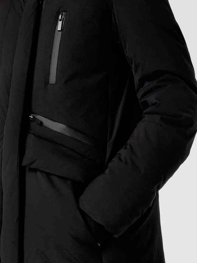 Der Mantel von REVIEW ist aus einem elastischen Material-Mix gefertigt und gerade geschnitten. Er kommt im unifarbenen Design mit Kapuze, seitlichen Eingrifftaschen und Storm Cuffs.