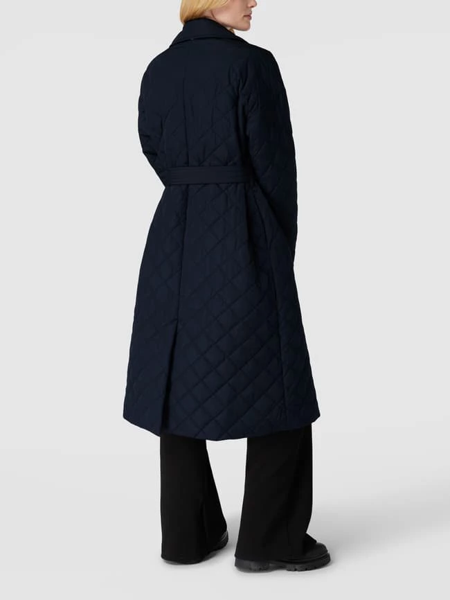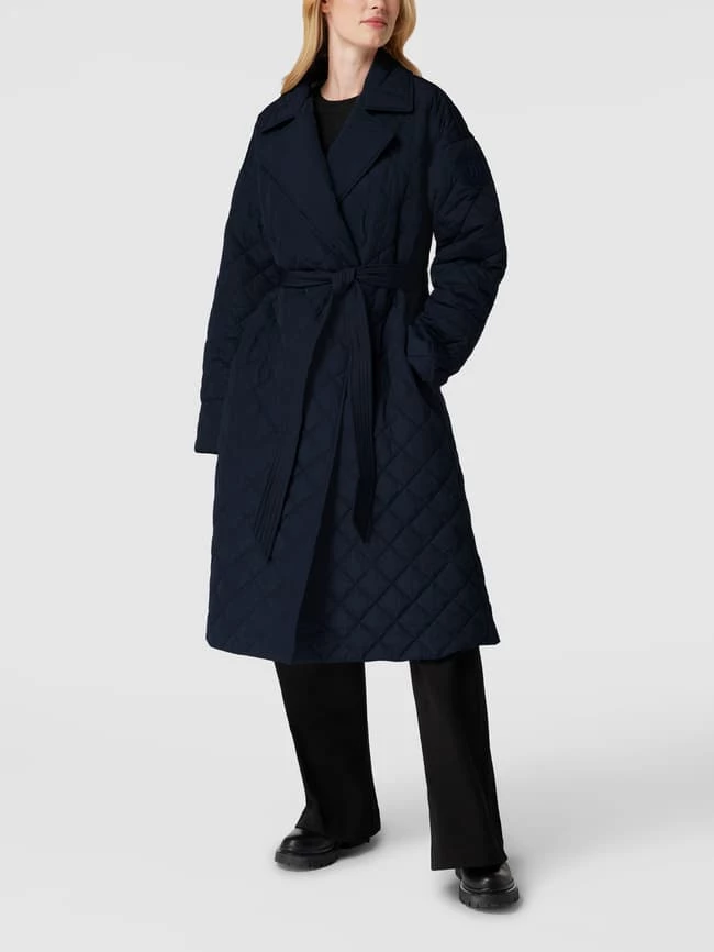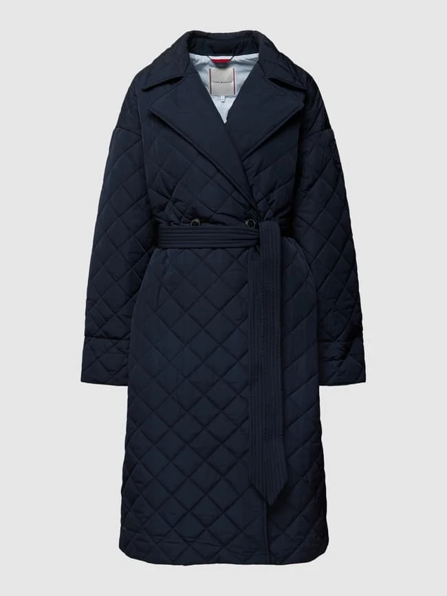 Der Steppmantel von Tommy Hilfiger ist aus strapazierfähigem Material gefertigt und gerade geschnitten. Er kommt mit Reverskragen, doppelreihiger Knopfleiste und Taillengürtel.