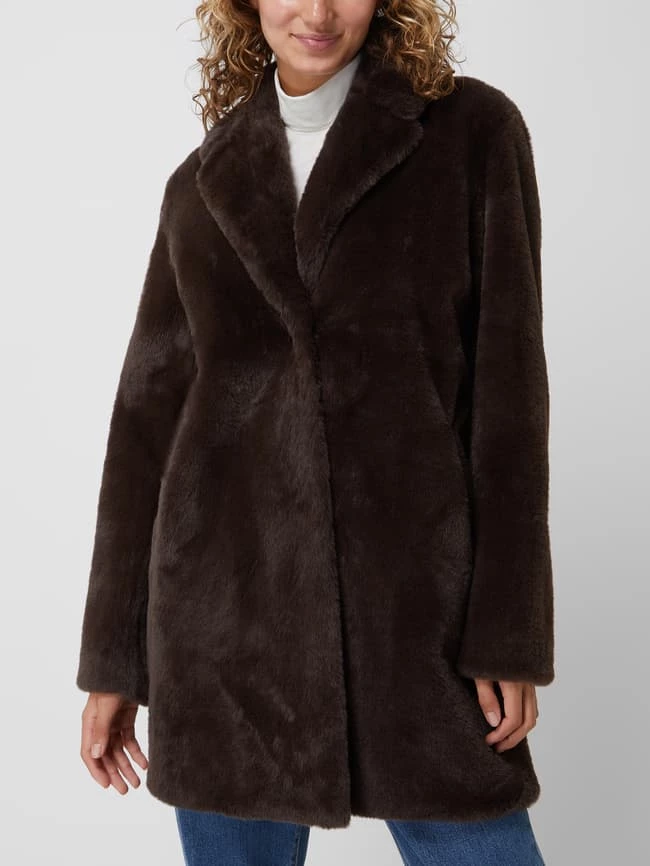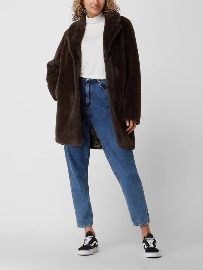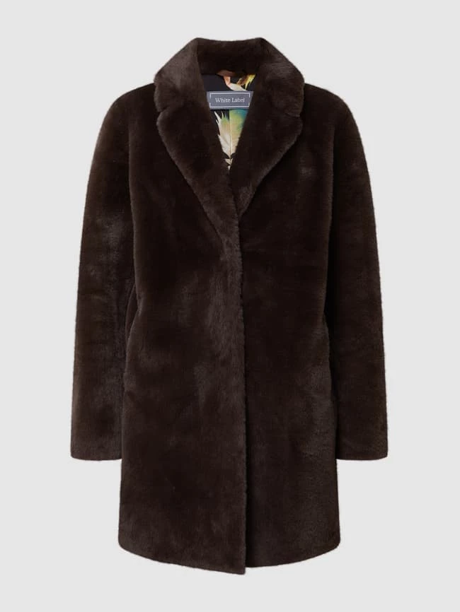Der Mantel von White Label ist aus Teddyfell gefertigt. Er zeigt sich in lockerer Passform mit Reverskragen, Druckknopfleiste und Eingrifftaschen.