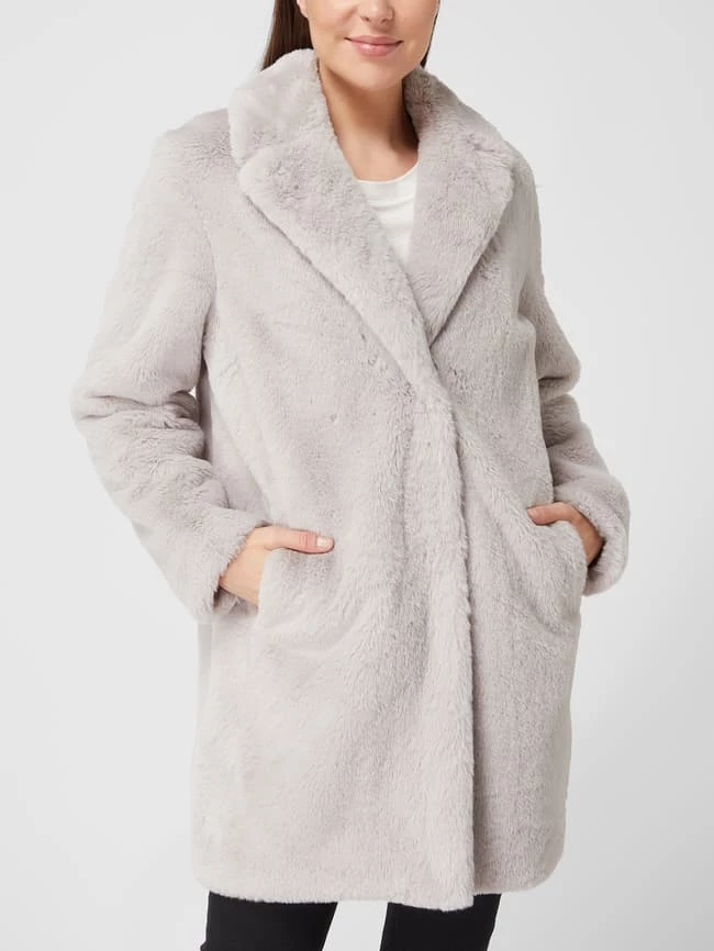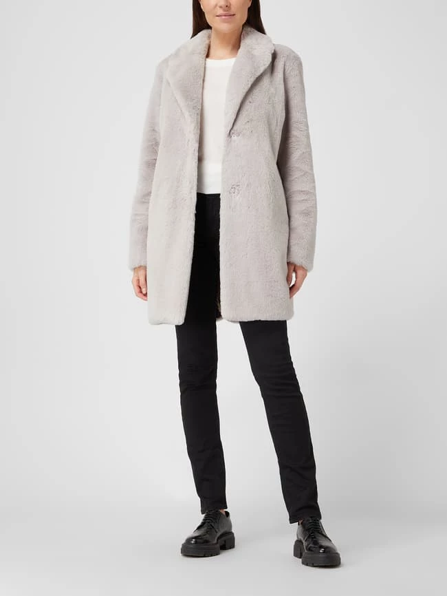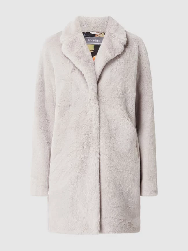 Der Mantel von White Label ist aus Teddyfell gefertigt. Er zeigt sich in lockerer Passform mit Reverskragen, Druckknopfleiste und Eingrifftaschen.